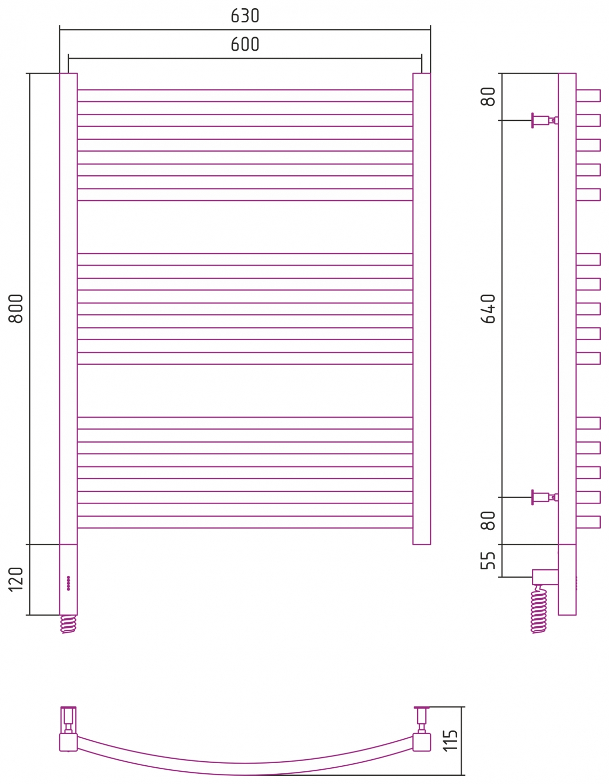 Полотенцесушитель электрический Сунержа Центурион 2.0 600x400